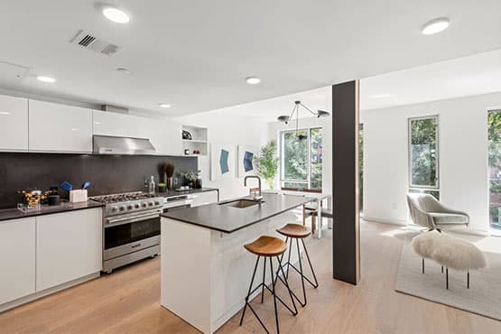 Slightly more than two years later the loan was paid in full, and the construction of this 7-story building which houses five full-floor condominiums has been completed. A two-bedroom boutique condominium at this property is currently being sold at $2.1 million.